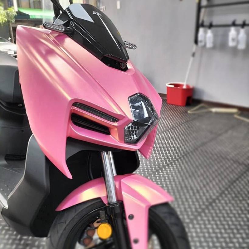 SYM 曼巴|NAKA 全車改色 ☛施作車輛: SYM 曼巴☛施作項目: 全車改色☛使用膜料: NAKA 帥氣的曼巴又來了,車主本來想全車烤漆無奈都調不出心中的色系,於是找上我們,在耐心跟車主溝通,終於挑到心中理想的色系,粉紅金,車主又愛好攝影,貼好馬上找好友外拍,在路上真的閃亮亮,真的有點高調哈哈~~✨✨✨